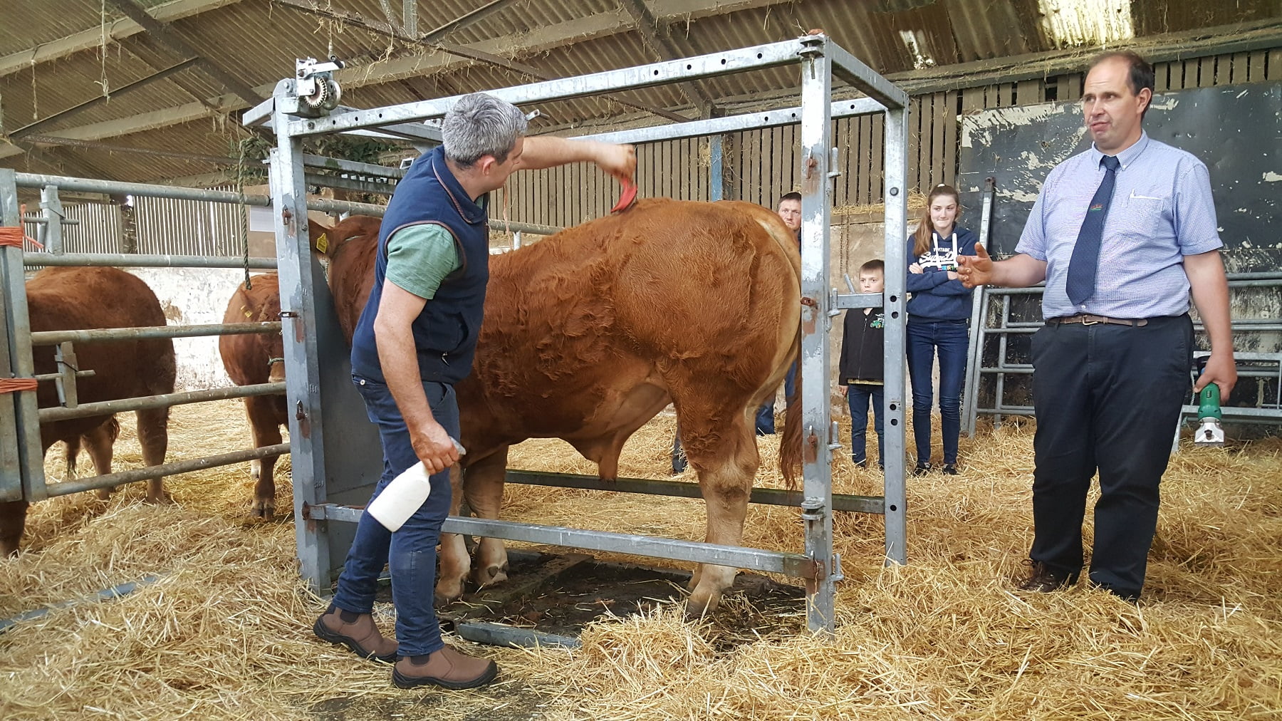 A very informative demo was given by the excellent Tom Hickey assisted by our Master judge Trevor Masterson. Youngsters and older listened and learned new and old tricks from the masters! And thanks to Gary, 4 smashing young pedigree Limousin bulls were provided for the event!