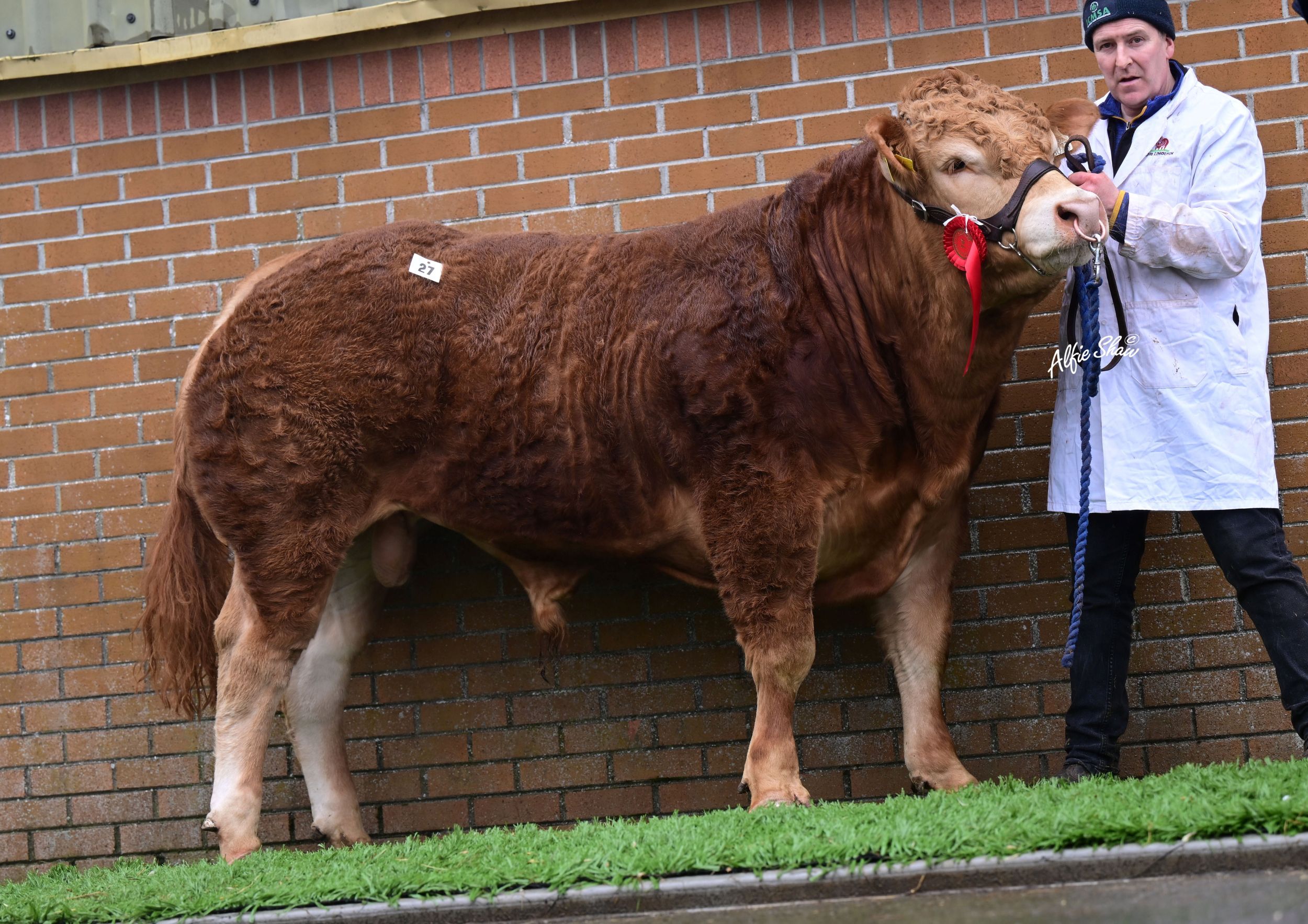 Lot 27. Micheal Roche, Mountcollins, Co. Limerick presented first prize winner KNOCKCOOLKEARE UNSTOPABULL ET, a September 2023 born son of Ampertaine Foreman and an Ampertaine Commander dam Castleview Gail. Unstopabull enjoyed a successful showing career picking up many accolades on the show circuit in the summer of 2024. Unstopabull is a double carrier of the Q204X gene. He was purchased by a herd in Northern Ireland for €7,800.
